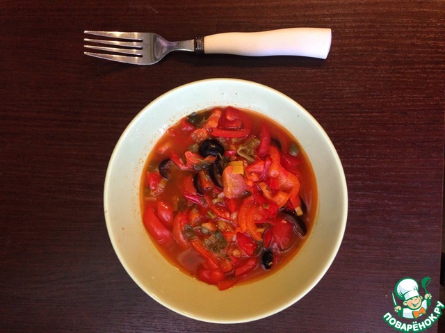 *Мне не повезло - не смогла купить зеленый перец, поэтому для приготовления использовала только желтый и красный, но в итоге красок хватило. -