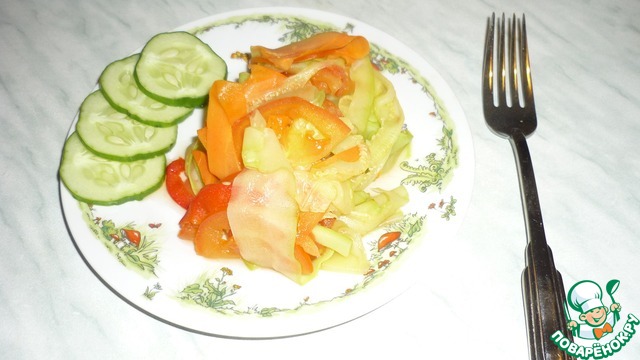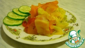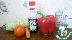 Я чаще готовлю из трех ингредиентов. Кабачок основа+морковка или перец или помидор, и конечно соевый соус Kikkoman.