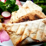 2. Завернуть салат в лаваш трубочкой. Из трубочек можно выложить колодец и украсить зеленью. Соус отдельно (клюквенный или острый томатный).