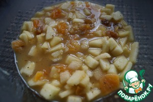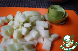 Яблоко почистить и нарезать небольшими кубиками. Вместо яблока можно взять грушу или дыню.