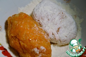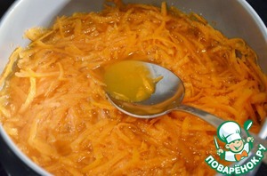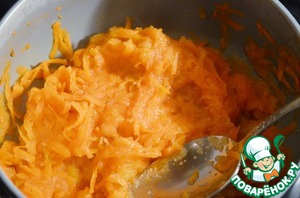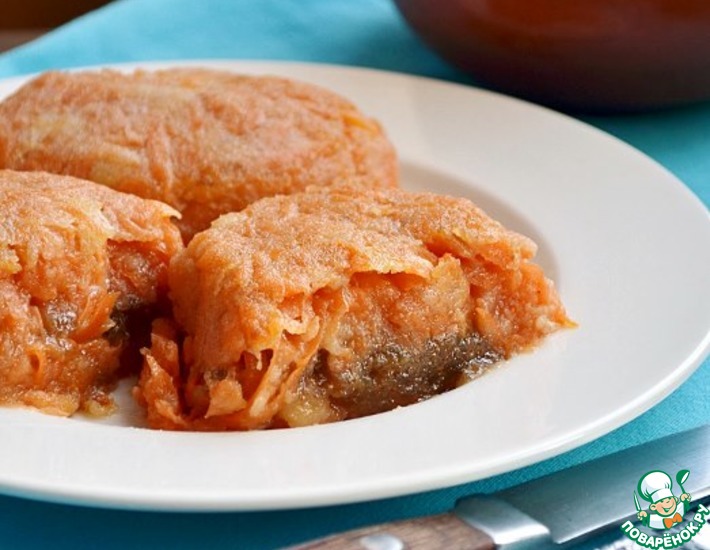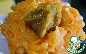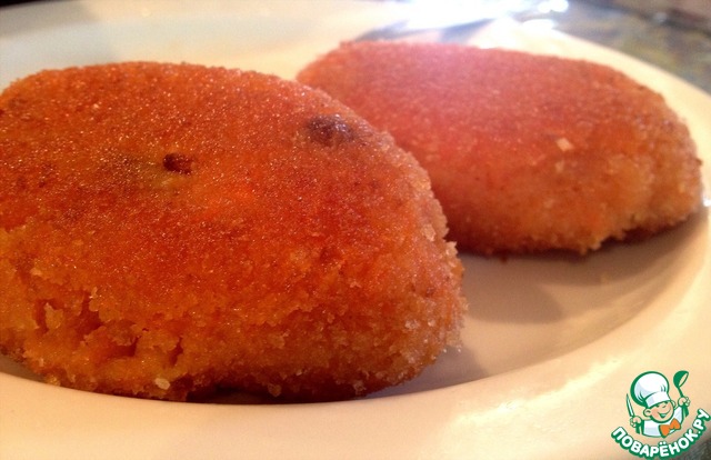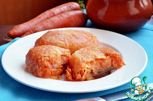Из получившейся морковной массы сформовать лепёшки, в центр каждой поместить начинку.