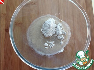 Готовим закваску: в теплой воде распускаем дрожжи (я использую сухие Саф-Левюр), когда они начинают "пузыриться", добавляем ржаную (обдирную) муку и сахар. Смешиваем и ставим в теплое место для вызревания.