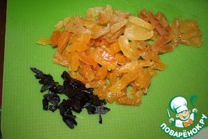 - Сухофрукты (у меня груши, персик и немного чернослива) — 200 г