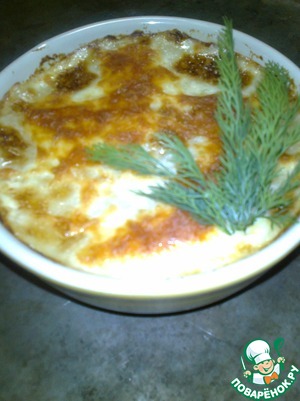 Нежнейший язык, под шубкой из картофельного пюре с овощами и сыром.