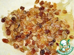 Смешать изюм с подошедшим тестом.