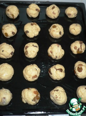 Разделать тесто на 20 кусочков (45-50 гр примерно), сформировать булки. Противень смазать небольшим количеством масла, выложить на него булочки, дать подойти 15-20 минут.