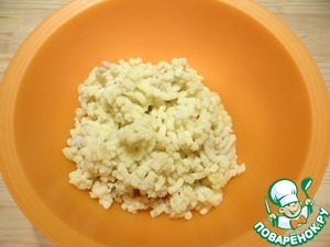 Готовлю картофельное тесто. Остывший отварной картофель пропускаю через мясорубку.