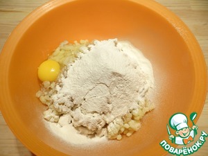 Замешиваю картофельное тесто. Муки может уйти чуть больше (это зависит от сорта картофеля), но больше одного стакана добавлять не следует.