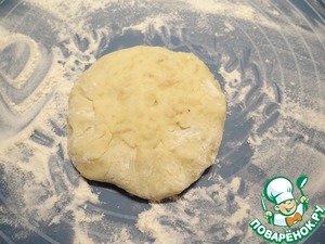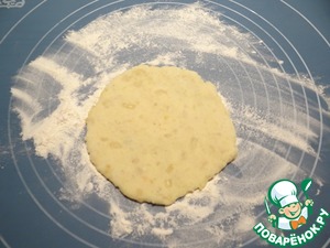 Отщипываю кусок картофельного теста и, используя муку для подпыла, формую тонкую лепешку.