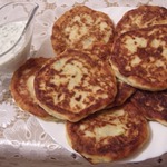 Соус готов. Подаю картофельные лепешки, полив соусом. Получаются очень вкусные лепешки, поверьте! Приятного Вам аппетита!