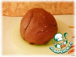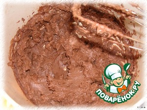 Добавить печенье с орехами в крем и тщательно перемешать. Получаем "тесто".