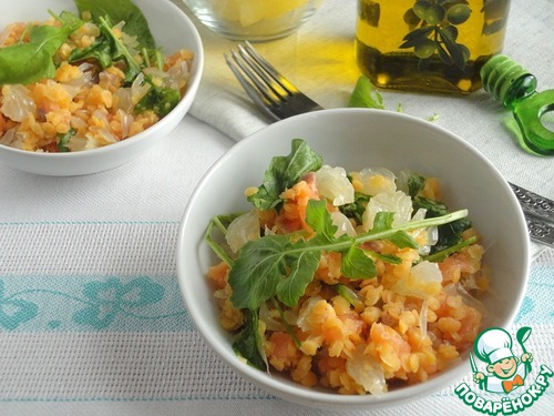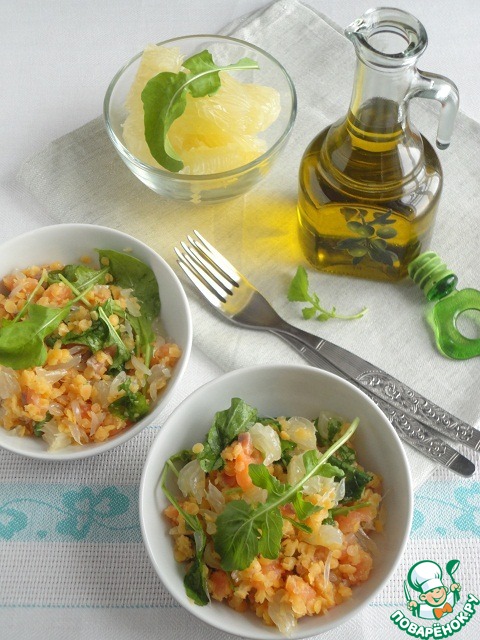 Ингредиенты для «Постный салат с семгой и чечевицей»: