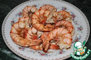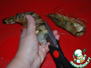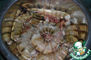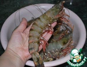 1. Первым делом хочу похвастаться своими красавицами. Если у Вас креветки не такие крупные, как у меня, то ориентируйтесь не на их кол-во, а на вес. Мои 11 креветок потянули на 1,3 кг (это с головой).