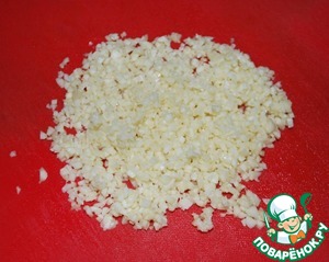 7. и измельчаем ножом. Ни в коем случае не пропускайте чеснок через пресс. Он должен быть именно рубленным.