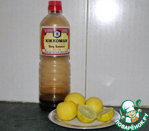 8. Берем лаймы (лимон) и соевый соус. К сожалению, у нас в Индии соус Kikkoman продается только в такой упаковке, что в принципе абсолютно не влияет на его отменный вкус и качество!