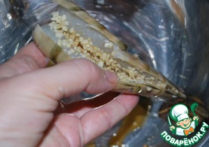 11. Закладываем чеснок в разрез на спинке.