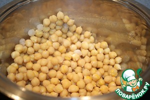 Отварить 60 мин. Воды 1:5, при нашем объеме нута, 1 л воды. За 10 мин до конца варки добавить соль