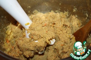 Смешать отварной нут, пассерованную морковь с луком, грибы. Пюрировать блендером