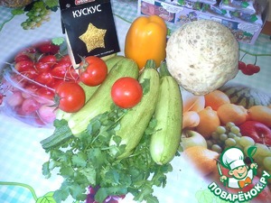 Ингредиенты для «Кабачки, фаршированные кускусом и овощами»: