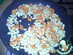 Сельдерей и морковь нарезать кубиком и обжарить на масле