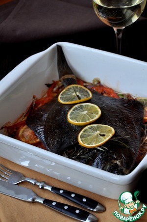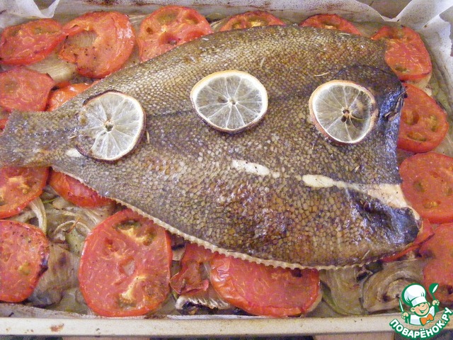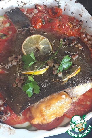 Рецепт «Запеченная камбала на овощной чешуе»: