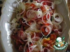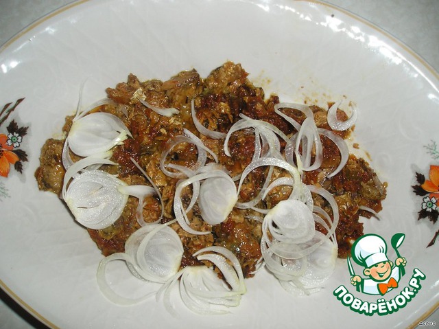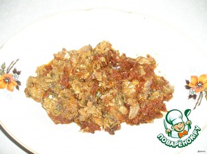 - Рыба (морская, консервированная в томате, у меня домашняя консерва) — 250 г