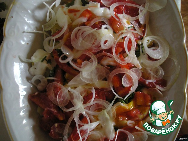 Консервированная рыбка нежится в лучке, зелени, помидорах, сметанке... Не пляж конечно, но неплохое местечко.