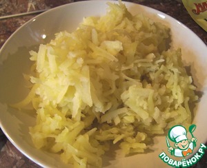 Выкладывать слоями. Сначала - половина картофеля, на него - половина лука, далее - слой майонеза...
