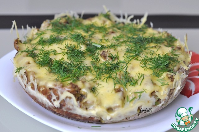 Все составляющие смешать (кроме твердого сыра - им бы будем посыпать уже готовое блюдо).