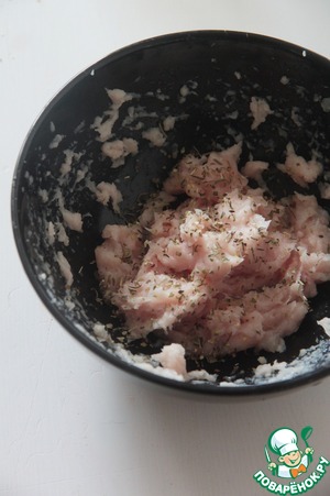 Из куриного филе сделать фарш. Я использую блендер, чтобы мясо хорошо формировалось.