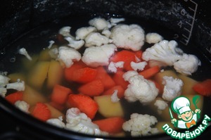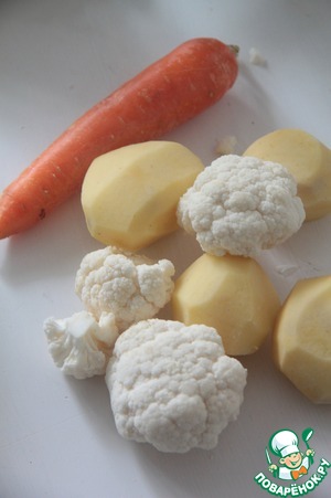 Набор для овощной запеканки может быть любым, я использую картофель, морковь и цветную капусту.