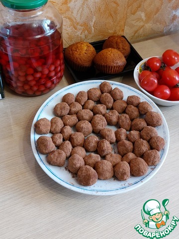 - Какао-порошок (для обвалки готовых конфет, можно использовать кокосовую стружку) — 1/2 стак.