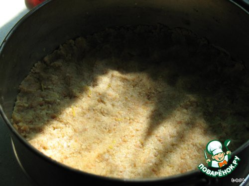 Растопить масло и перемешать с крекерной крошкой, лимонным соком и цедрой. Посолить и поперчить. Перемешать и плотно уложить на дно формы.