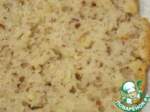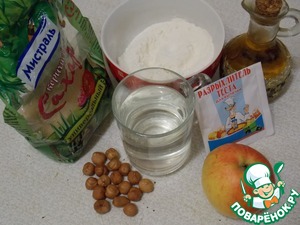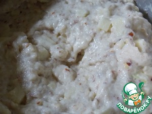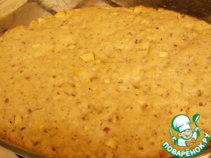 • Орехи перемолоть не очень мелко. Добавить к муке с маслом и тщательно перемешать. Влить воду, перемешать. Должна получиться консистенция густой сметаны. Положите тесто в теплое место на четверть часа.
