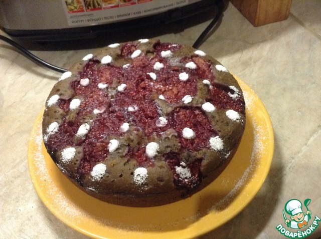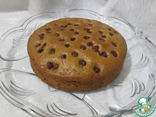 Пирог готов и похож он на шоколадный, потому что сироп тёмного цвета от спелой вишни и ложечки тёмного сахара.