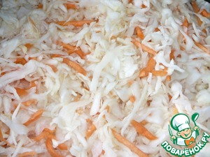 Шинкуем капусту, натираем морковь, всыпаем в смесь соль, сахар, вливаем сок лимона и хорошенько размешиваем (можно даже помять). Пробуем на вкус. Должно быть, как приятный такой салатик. Затем отправляем капустную смесь на сковороду под крышку, вливаем немного масла. Огонь минимальный. Наша задача, чтобы капуста не зажарилась, а пропарилась до готовности.