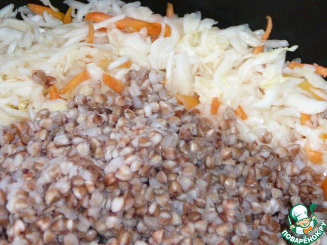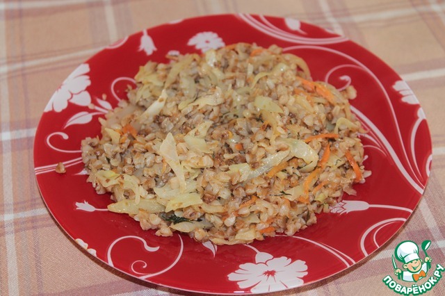 [+5]Я сначала чуть обжарила морковку с капустой, а затем добавила гречневую крупу, специи, воду и довела до готовности (сознаюсь, сфилонила