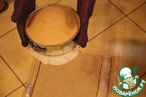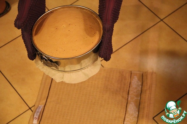 Здесь доходим до самого интересного. Горячую форму вынимаем из духовки и... ровно упускаем с высоты около 60 см на пол :-), после чего ставим обратно в духовку и оставляем с приоткрытой дверцей до полного остывания.