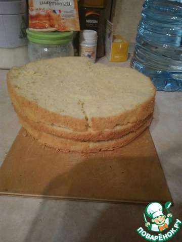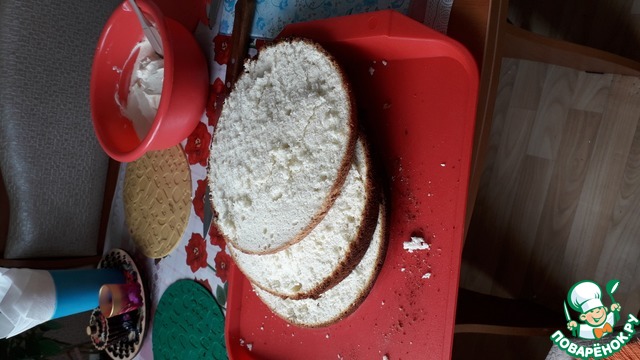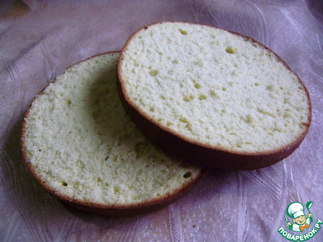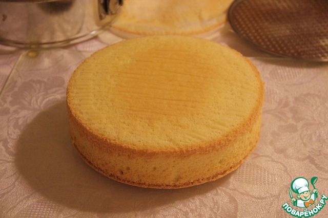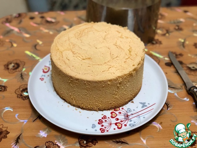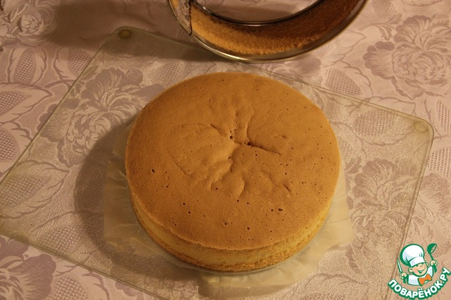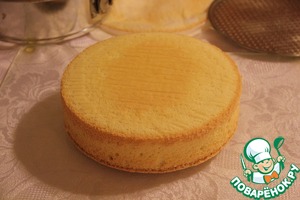 Осторожно поддеть ножом бисквит и отделить от формы (только когда полностью остынет)