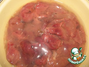 Добавить в сковородку жидкость, в которой мариновалась печень.