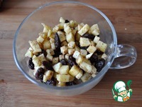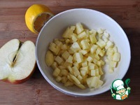 Пока рис варится, берём яблоко, чистим и нарезаем мелкими кубиками, сбрызгиваем соком лимона.