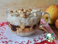 Берём форму или порционные формочки для запекания, смазываем любым растительным маслом. На дно кладём половину рисово-овсяной каши. Сверху выкладываем яблочно-изюмную смесь.