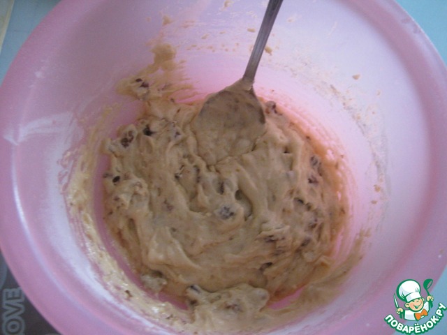 • Добавляем грецкие орехи измельчённые, изюм, перемешиваем.