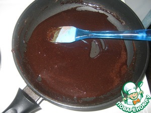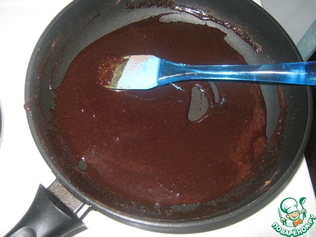 • Теперь приготовим постную шоколадную глазурь. Смешать коричневый сахар, какао-порошок, воду, довести до кипения, прогреть на слабом огне две минуты, добавить растительное масло.