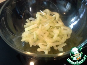 Сельдерей моем, чистим и режем тоненькими ломтиками.
