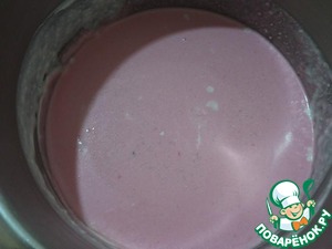- Сок (малиновый, можно использовать сироп, только красного цвета, 4 ст.л. в крем , 2 ст.л. - в воду для окрашивания долек) — 4 ст. л.