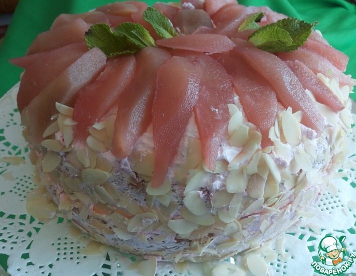 Обмазать бока торта кремом и обсыпать миндальными хлопьями. Верх торта украсить дольками груш, которые готовятся следующим образом: фрукты очистить, убрать сердцевину и нарезать кусочками...