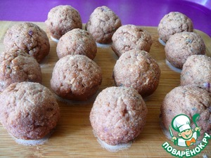 Формируем шарики с начинкой. Далее, шарики можно обжарить, запечь, сварить. А можно в пакет и в морозилку. Я так и поступила. Частенько делаю заготовки.