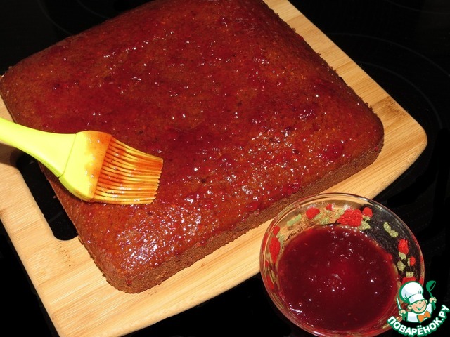 Готовую коврижку сверху смазать силиконовой кисточкой джемом, который слегка нагреть в микроволновой печи.