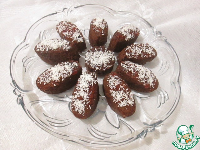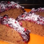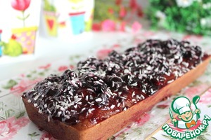 Готовый кекс поливаем сверху смородиновым вареньем и посыпаем кокосовой стружкой. Все! Приятного аппетита!!!